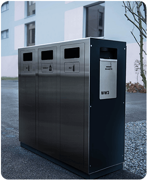 Bin-e optimizes waste management in your facility, allowing you to save costs, time and labour. It ensures precisely sorted raw material through automatic recognition and segregation. Thanks to the compression of plastic and paper the frequency of emptying the bins is reduced by half.